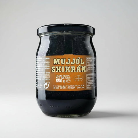 El shikran es el nombre que reciben las huevas de mújol (también llamado múgil o lisa) que han sido saladas, prensadas y secadas siguiendo un proceso artesanal milenario. El resultado es una pieza compacta, de color ámbar oscuro, con textura cerosa y sabor intensamente marino.